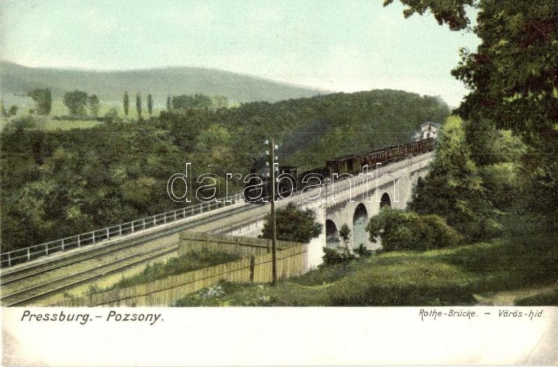 Pozsony, Pressburg, Bratislava; Rothe-Brücke. Verlag "Bediene dich allein" / Vörös híd, vasúti híd, viadukt, gőzmozdony / railway bridge, viaduct, locomotive (EK)