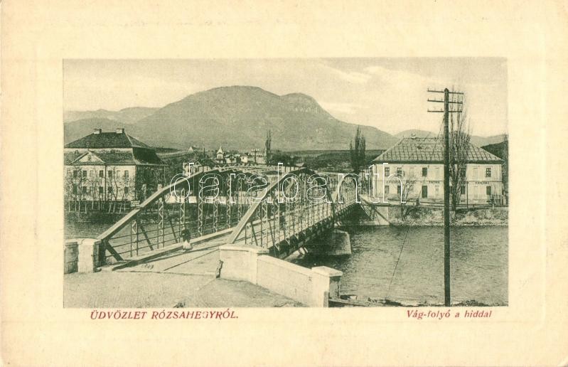 Rózsahegy, Ruzomberok; Vág folyó hídja, Hotel Tátra szálloda, étterem ...