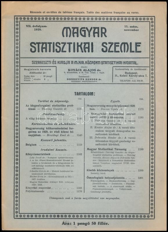 1929 Magyar Statisztikai Szemle VII. évf. 11. sz. 1929. november. Szer... https://www.darabanth.com/en/325-Online-auction/325.0/Books/Books-Other-rarities~1000018/1929-Magyar-Statisztikai-Szemle-VII-evf-11-sz-1929-november-Szerk-M-Kir-Kozponti-Statisz~II1710261