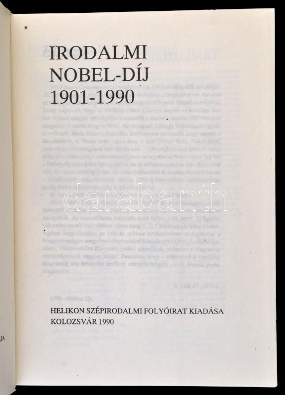 https://www.darabanth.com/en/325-Online-auction/325.0/Books/Books-Other-rarities~1000018/Irodalmi-Nobel-dij-1901-1990-Osszeall-K-Jakab-Antal-Kolozsvar-1990-Helikon-Papirkotes~II1643877