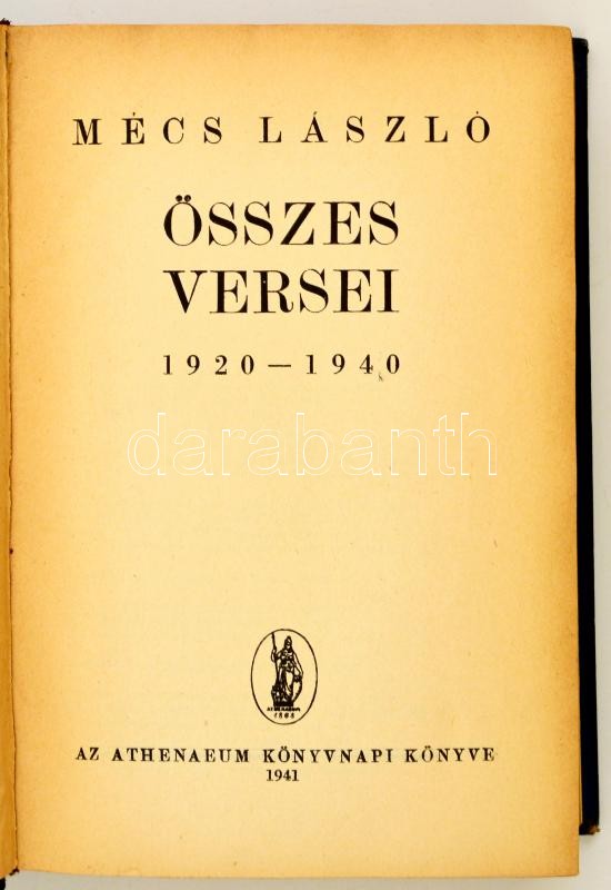 Mécs László összes versei 1920-1940. Bp., 1941, Athenaeum. Kiadói egés... https://www.darabanth.com/en/325-Online-auction/325.0/Books/Books-Other-rarities~1000018/Mecs-Laszlo-osszes-versei-1920-1940-Bp-1941-Athenaeum-Kiadoi-egeszvaszon-kotes-kopott~II1712967