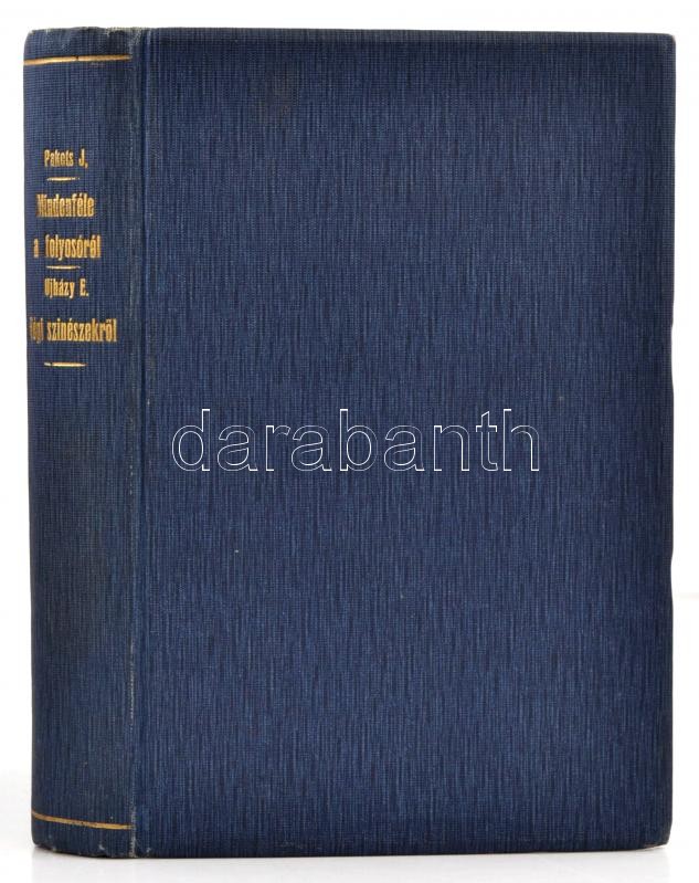 Description: Pákots József: Mindenféle a folyosóról. (A T. ház humora.) Rákosi Viktor (Sipulusz) előszavával. (Bér Dezső és Linek Lajos karrikaturáival.) Bp.,1905, Kunossy, Szilágyi és Társa.+Ujházi Ede: Régi színészekről. Bródy Sándor előszavával. (Egybekötve.) Bp., 1908, Nap Újságvállalat. Átkötött aranyozott gerincű egészvászon-kötés, 144 p.+16 t.+2+116 p.