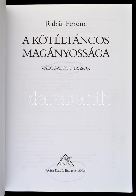 https://www.darabanth.com/en/325-Online-auction/325.0/Books/Books-Other-rarities~1000018/Rabar-Ferenc-A-koteltancos-maganyossaga-Valogatott-irasok-Bp-2002-Osiris-Kiadoi-pap~II1660386