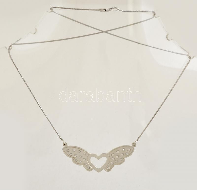 Ezüst(Ag) apró kövekkel díszített szívecskés nyakék, jelzett, h: 51 cm...