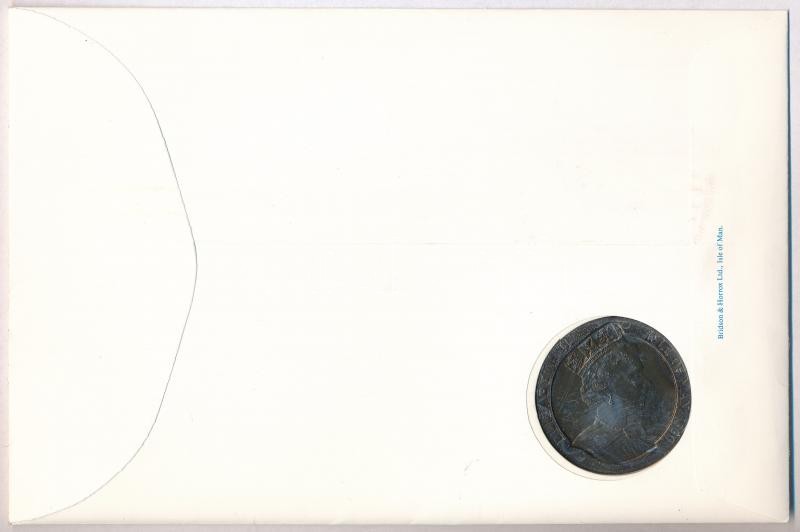 Isle of Man 1990. 1 Crown "Penny Black" coin letter with first day of issue stamp C:UNC