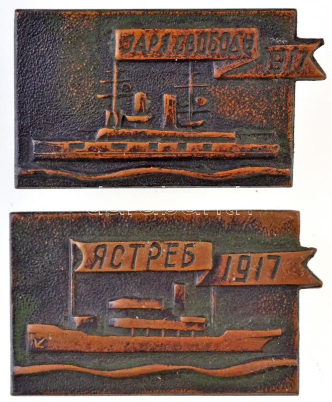 Szovjetunió DN "Jasztreb 1917" fém jelvény (20x34mm) + "Zarya Svobody 1917" fém jelvény (20x34mm) T:2 patina Soviet Union ND "Yastreb 1917" metal badge (20x34mm) + "Zarya Svobody 1917" metal badge (20x34mm) C:XF patina