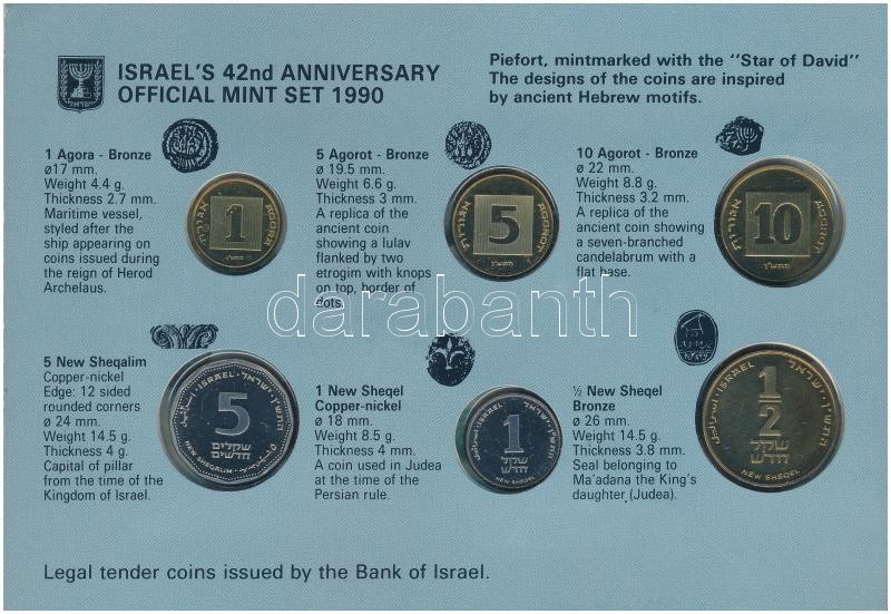 https://www.darabanth.com/en/325-Online-auction/325.0/Numismatics/Foreign-Coin-sets~2000014/Izrael-1990-1a-5Sh-6xklf-Izrael-42-evforduloja-piefort-forgalmi-sor-karton-disztokban-TPP-~II1809342