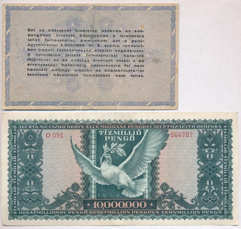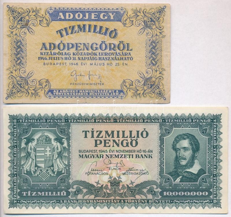 1945. 10.000.000P + 1946. 10.000.000AP sorozat- és sorszám nélkül T:II...