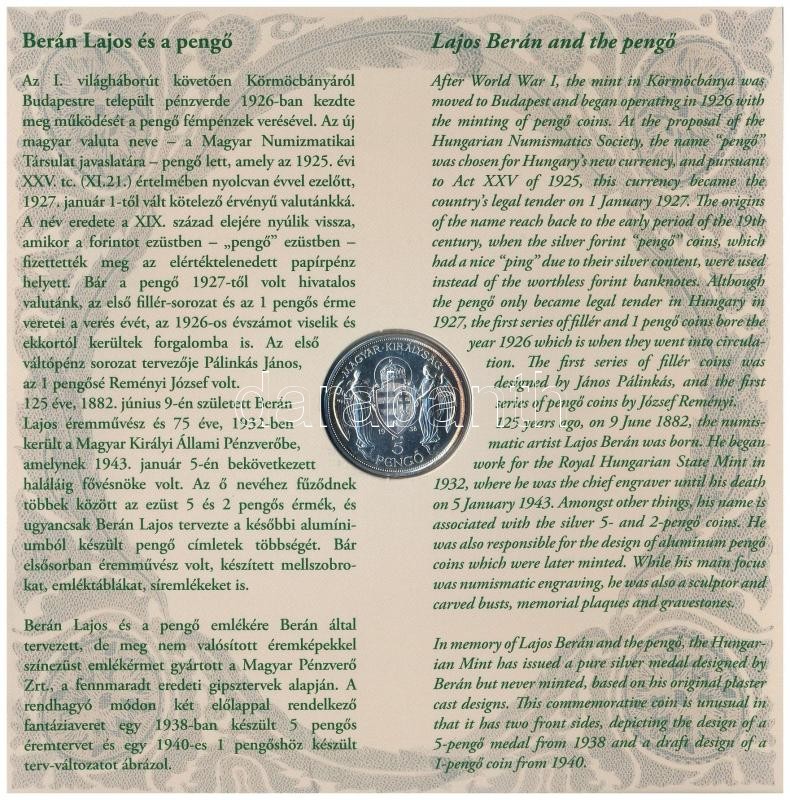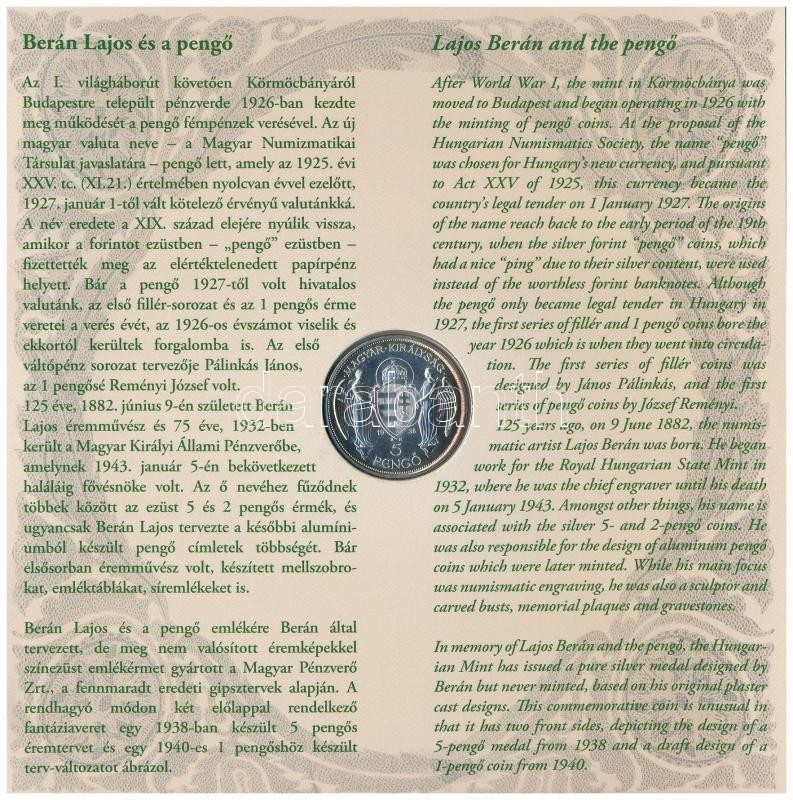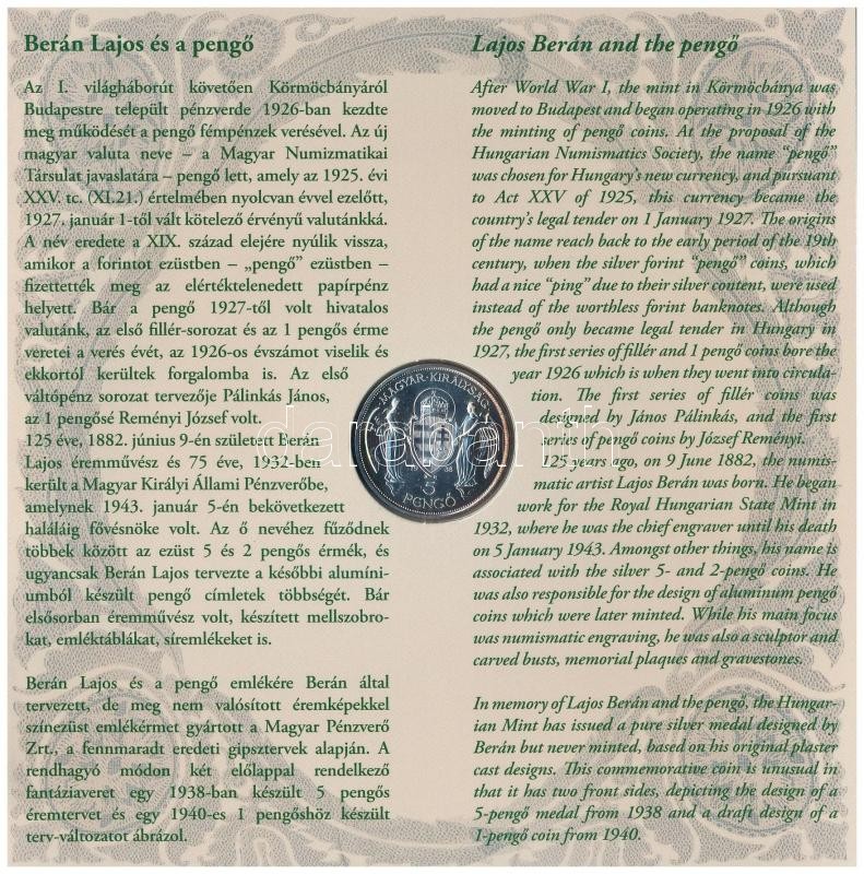 2007. 1Ft-100Ft (8xklf) "Berán Lajos és a pengő" forgalmi sor, benne "Berán Lajos és a pengő" Ag emlékérem (10g/0.999/27mm) (5x) T:BU