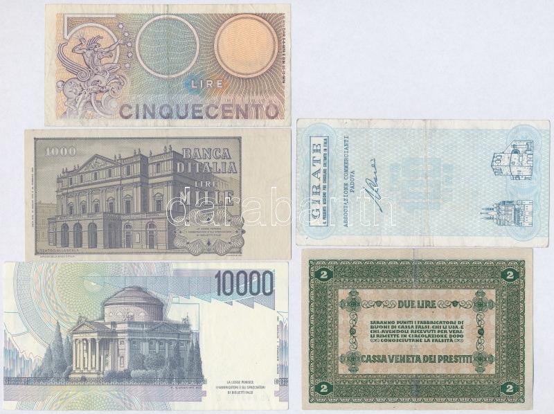 Olaszország 1918-1984. 5db-os vegyes bankjegy és csekk tétel T:II-,III