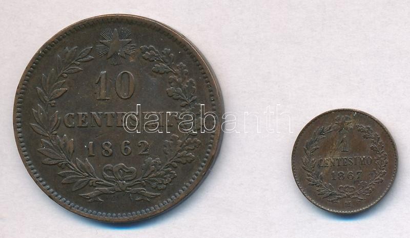https://www.darabanth.com/en/325-Online-auction/325.0/Numismatics/Worldwide-silver-and-metal-coins~2000013/Olaszorszag-1862-10c-Cu-plus-1867M-1c-Cu-II-Viktor-Emanuel-T2-1-ph-apro-u--Italy-1862-1~II1809924