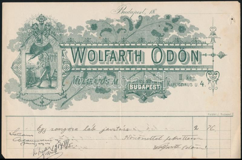 1914 Wolfarth Ödön műlakatos mester díszes fejléces száma fél, 15x22,5...