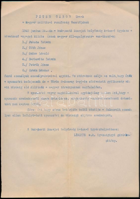 https://www.darabanth.com/en/325-Online-auction/325.0/Other-collectibles/Documents~17/1945-Orosz-es-magyar-nyelvu-Peter-Gabornak-cimzett-Fekete-Istvan-iro-es-tarsai-elleni-n~II1807952