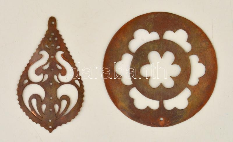 2 db vörösréz medál, d: 6 cm, 6,5x3,5 cm