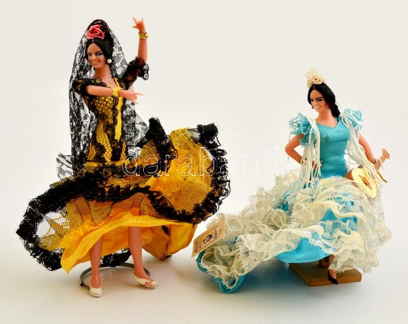 Spanyol táncoslány babák, 2 db, m: 16 és 20 cm