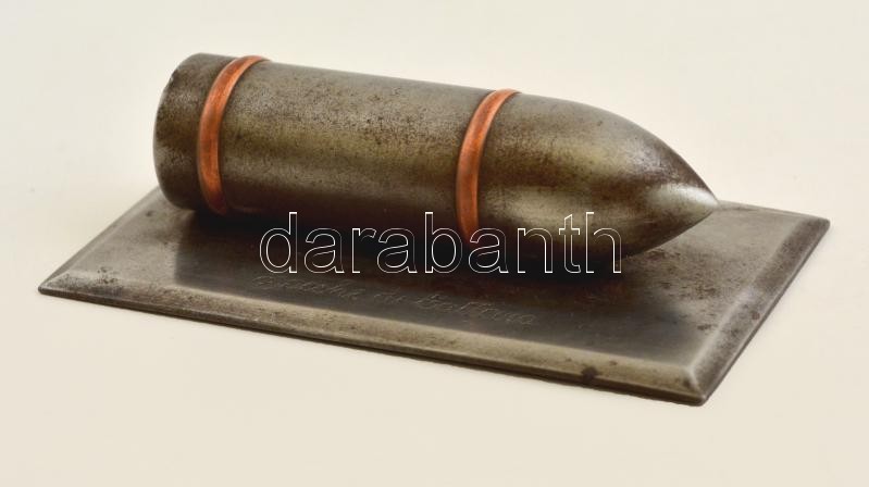 1915 Hajóágyú töltényéből készült világháborús emlék "Bocche di Cattaro Weltkrieg 1914-15" gravírozással, 10x5,5x3 cm