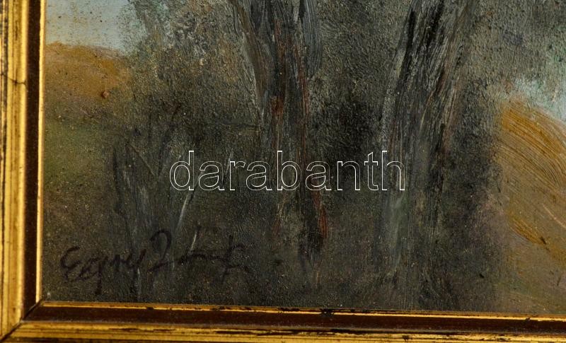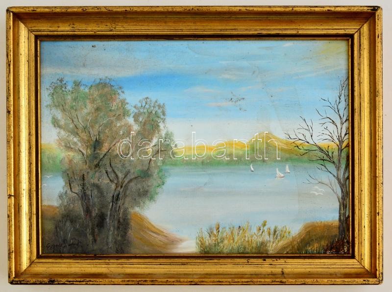 Egry jelzéssel: Tópart, olaj, farost, keretben, 15,5×22,5 cm