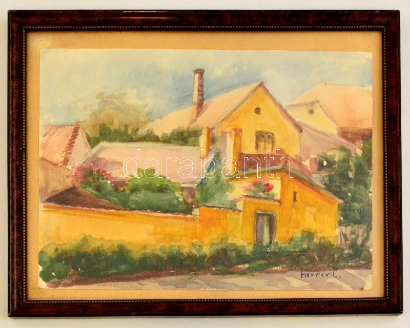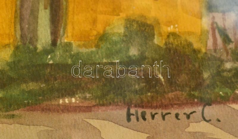Herrer jelzéssel: Utcarészlet. Akvarell, papír, üvegezett keretben, 20...