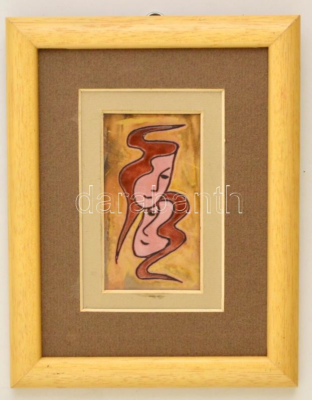 Jelzés nélkül: Arcok. Tűzzománc, fém, fa keretben, 8,5×4,5 cm