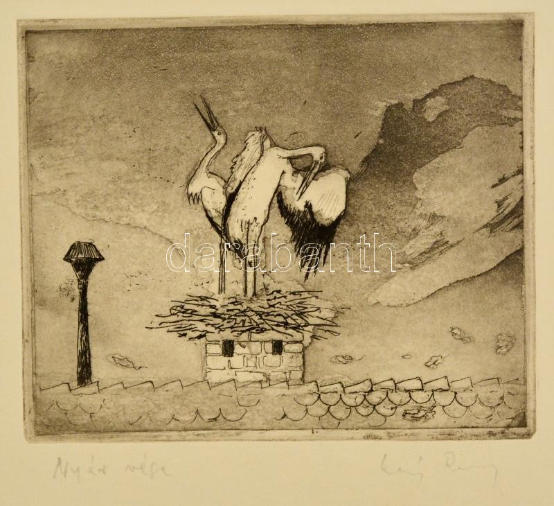 Láng Rudolf (1904-1991). Nyár vége. Rézkarc, papír. Jelzett, 12x15 cm