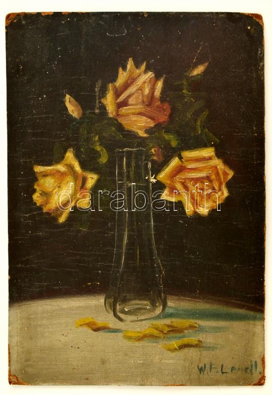 Leidl jelzéssel: Virágcsendélet, olaj, farost, 35×24 cm