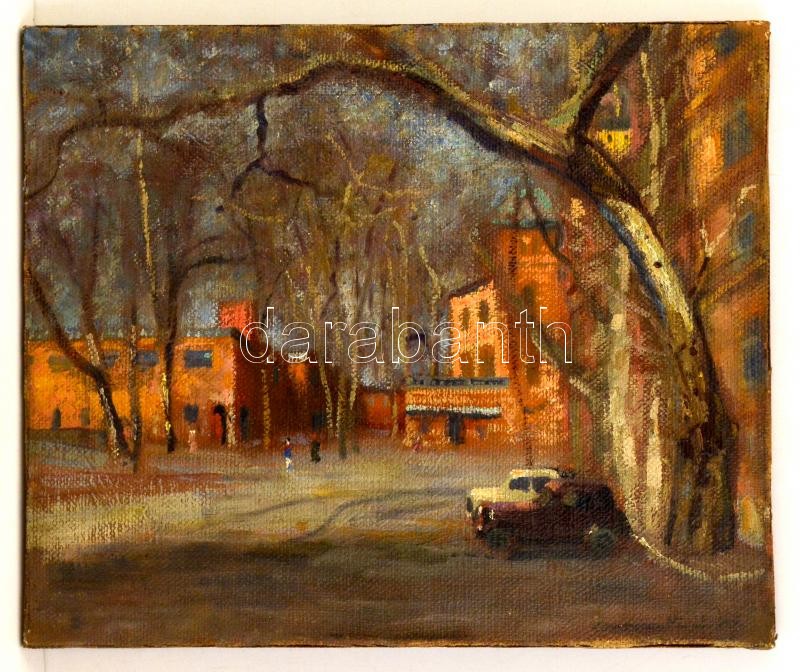 Lossonczy Tamás (1904-2009): Kilátás a térre. Olaj, vászon, jelzett, 50×60 cm