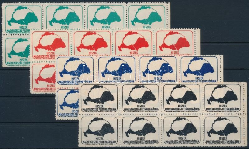 1920-1930 4 klf Trianon levélzáró nyolcastömbökben "Hiszek Magyarország feltámadásában"