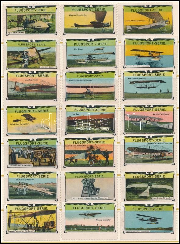 cca 1900 Repülők, 21 darabos levélzáró gyűjtemény berakólapon / Planes poster stamps