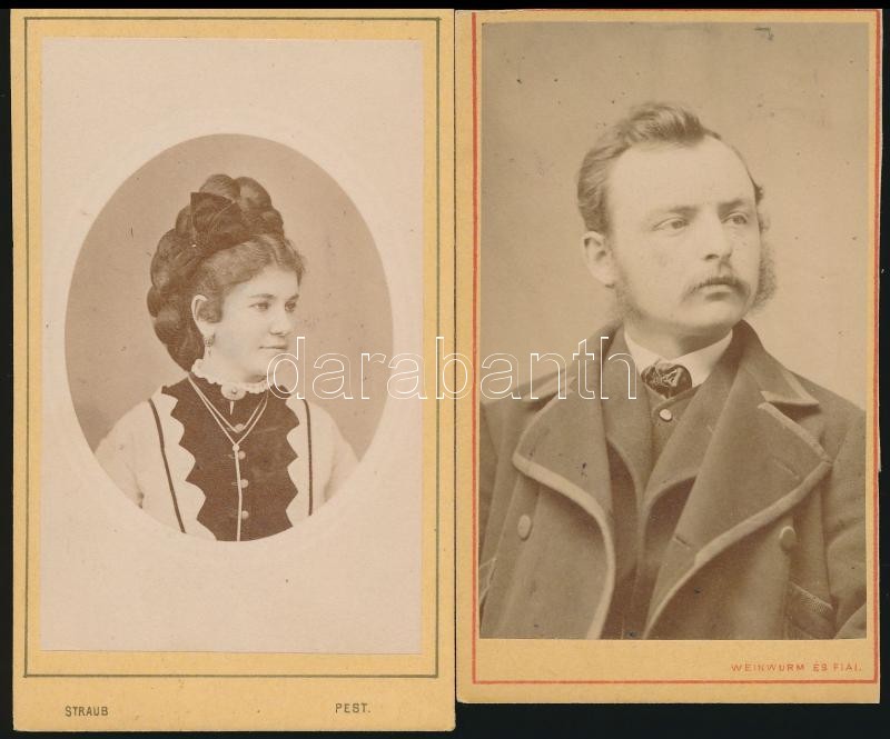 cca 1869 Straub és Weinwurm pesti fényképészek műterméből 2 db vizitká...