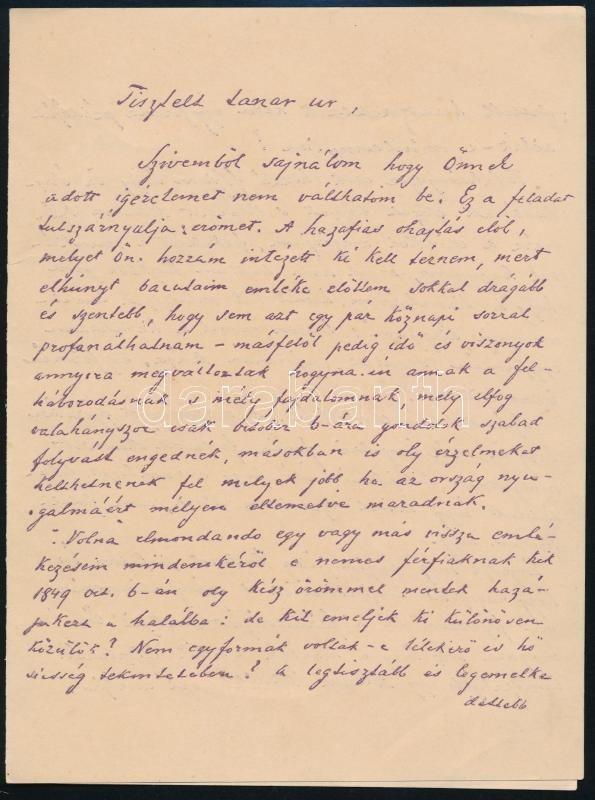Description: 1890 Klapka György Varga Ottó főgimnáziumi tanárnak, az Aradi vértanúk albuma szerkesztőjének írt válaszlevelének nyomtatott másolata, az Aradi vértanúk albuma kötetből, 4 p.