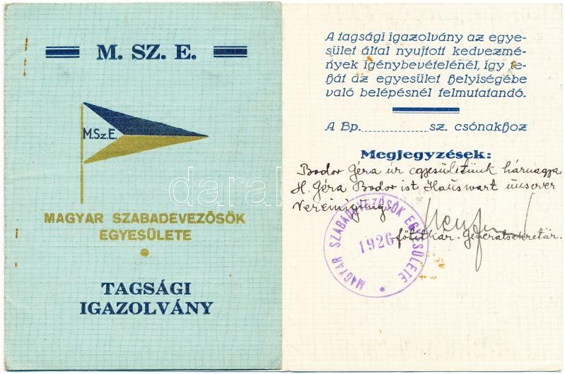 1926 Magyar Országos Szabadevezősök Egyesülete tagsági igazolvány.