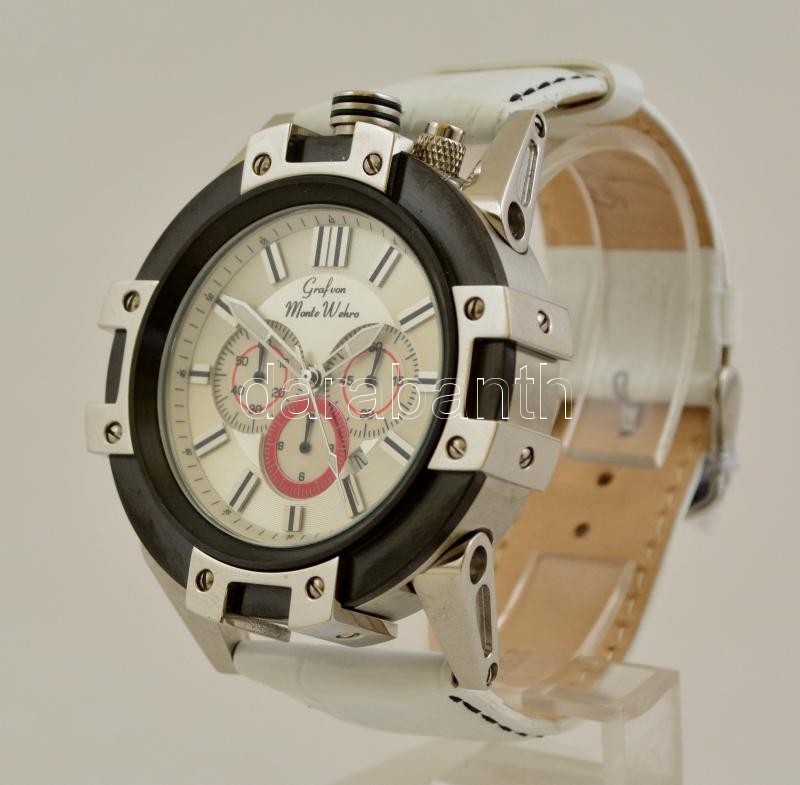 Graf von Monte Wehro extravagáns quartz karóra új állapotban bór szíjjal. Nagyméretű d: 5 cm