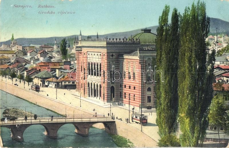 https://www.darabanth.com/en/325-Online-auction/325.0/Postcards/Bosnia-and-Herzegovina~2500020/Sarajevo-Rathaus-Gradska-vijecnica-town-hall-tram-bridge-Simon-Kattan-Nr-38-azott-sarok-~II1810613