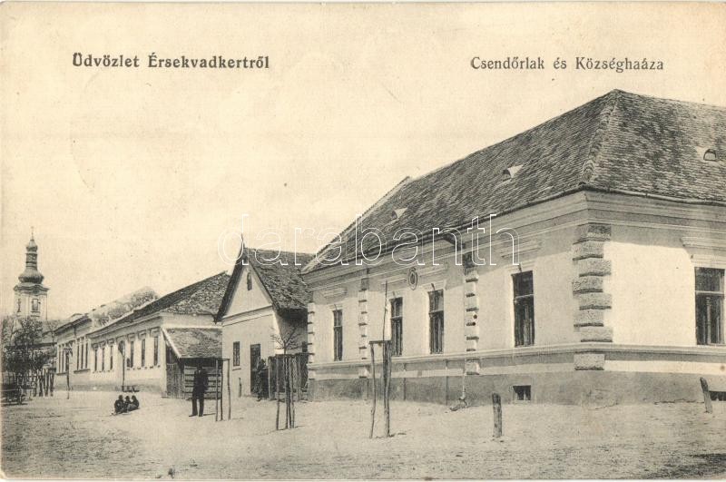 1913 Érsekvadkert, Csendőrlak, Községháza, templom, utca