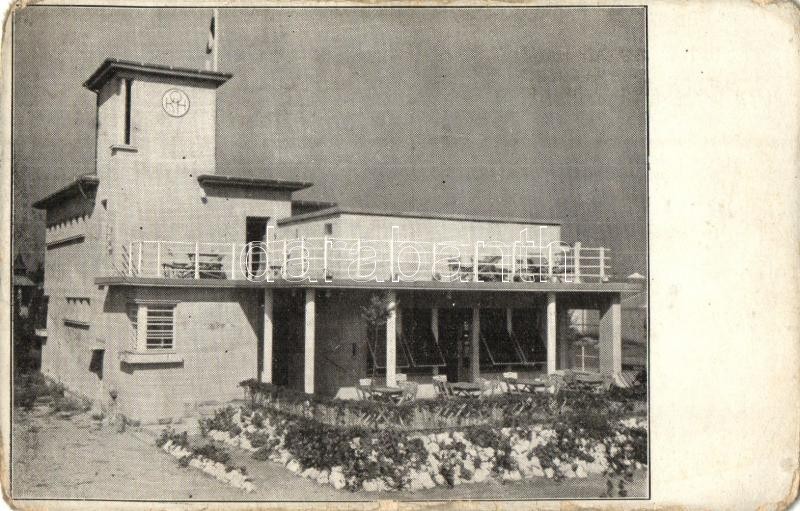 Budapest III. Békásmegyer, Csillaghegy, O. K. H. Tisztv. Sportegyesülete clubháza (kopott sarkak / worn corners)