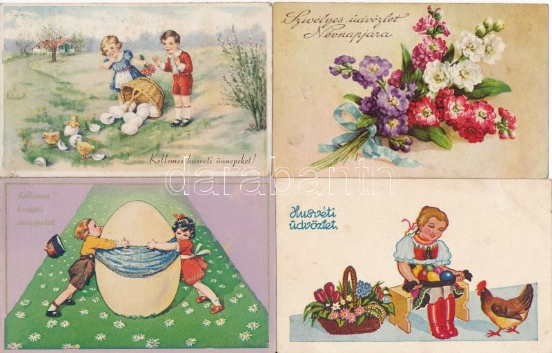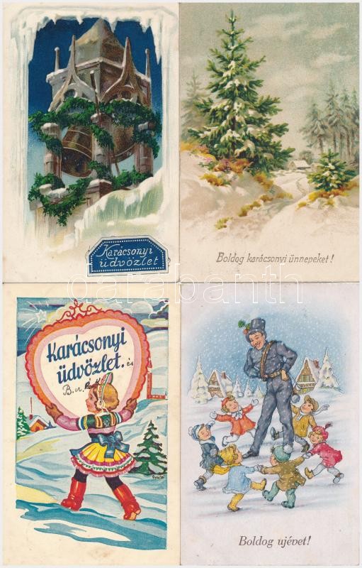 Description: 33 db RÉGI üdvözlő lap sok dombornyomott, karácsonyi és litho lappal / 33 pre-1945 greeting art postcards with many litho, embossed and Christmas themed cards