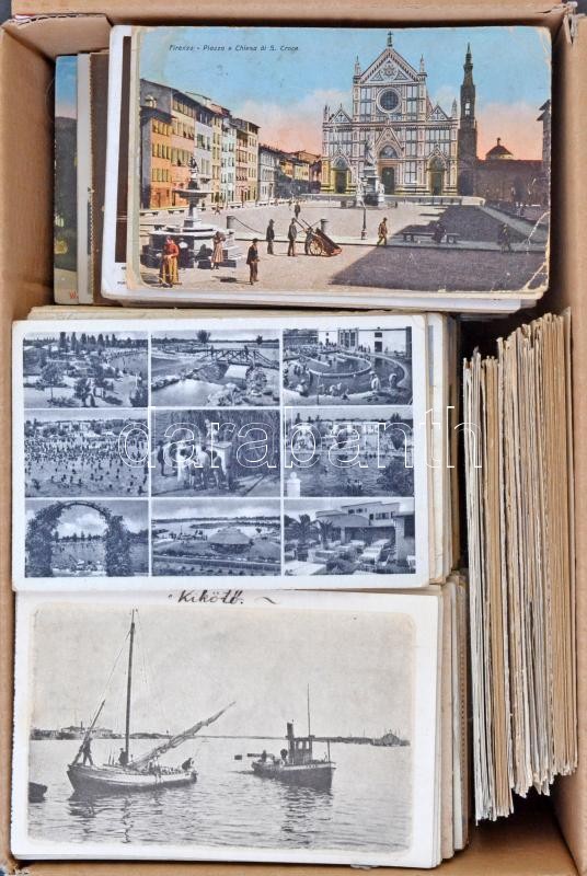Description: Kb. 928 db főleg régi külföldi városképes lap és üdvözlőlapok, közte kb. 100 magyar városképes lap, vegyes állapotban / Cca. 928 mainly pre-1945 European and Worldwide town-view postcards and greeting cards, among them cca. 100 Hungarian town-view postcards, mixed condition