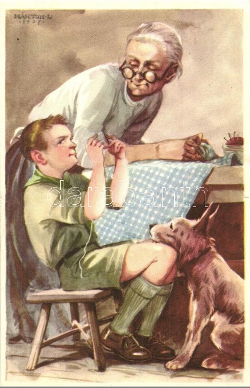 A cserkész feljebbvalóinak jószívvel engedelmeskedik. Cserkész levelezőlapok kiadóhivatal / Hungarian scout boy art postcard s: Márton L. (EK)