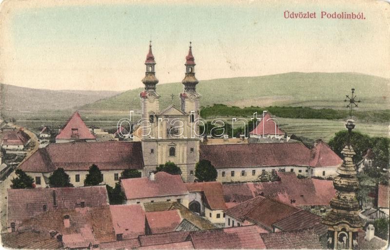 Podolin, Podolínec (Szepes, Zips); látkép, Piarista templom. Guttmann József kiadása / general view, Piarist church (EK)