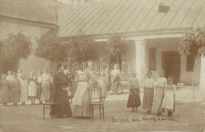 1908 Börvely, Berveni; Óvoda udvar, gyerekek csoportképe / kindergarte...