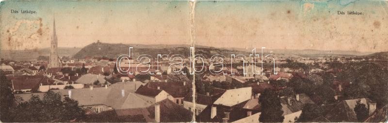 Dés, Dej; látkép, zsinagóga. Goldstein J. kiadása, kihajtható panorámalap / general view, synagogue. foldable panoramacard (hajtásnál szakadt / bent till broken)