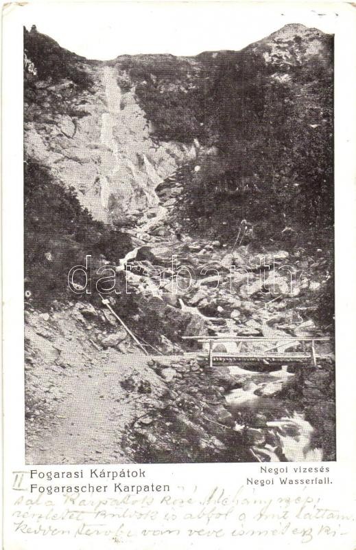 Fogarasi-havasok (Fogarasi Kárpátok), Fogarascher Karpathen, Muntii Fagarasului; Negoj csúcs, vízesés, híd / Varful Negoiu / Negoi Wasserfall / mountain, waterfall, bridge (EK)