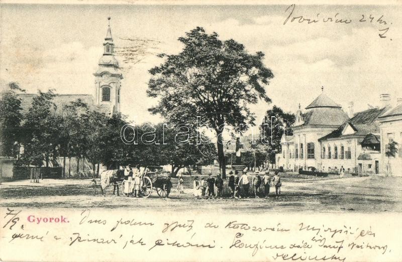 Gyorok, Ghioroc; Fő tér, Római katolikus templom, Gróf Nádasdy kastély / main square, Roman Catholic church, castle