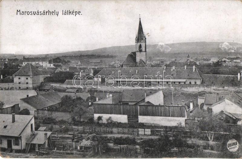 Marosvásárhely, Targu Mures; látkép, Református vártemplom. Vincze és ...