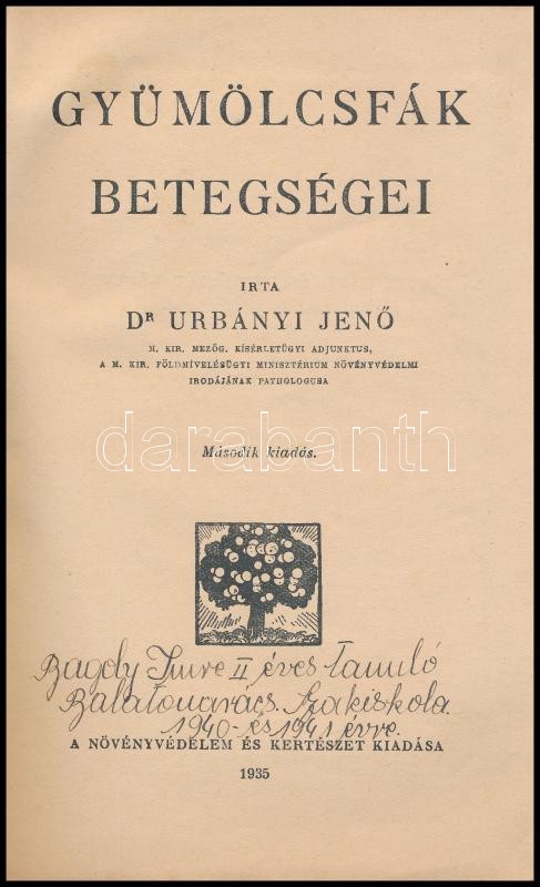 Dr. Urbányi Jenő: Gyümölcsfák betegségei. Növényvédelem és kertészet k... https://www.darabanth.com/en/326-Online-auction/326.0/Books/Books-Gastronomy-and-Gardening~1500008/Dr-Urbanyi-Jeno-Gyumolcsfak-betegsegei-Novenyvedelem-es-kerteszet-konyvtara-1-Bp-~II1812449