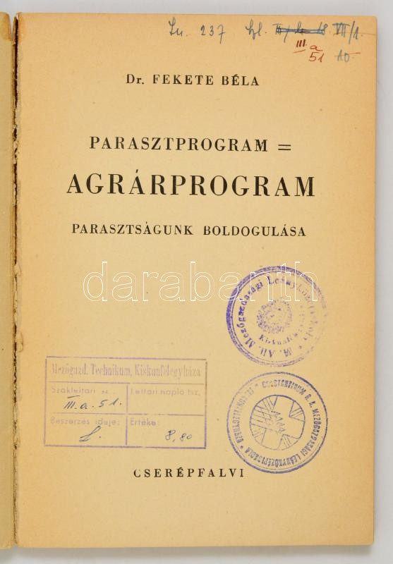 Dr. Fekete Béla: Parasztprogram=agrárprogram. Parasztságunk boldogulá... https://www.darabanth.com/en/326-Online-auction/326.0/Books/Books-History~1500005/Dr-Fekete-Bela-Parasztprogram3Dagrarprogram-Parasztsagunk-boldogulasa-A-rajzokat-Soos-es-S~II1754450