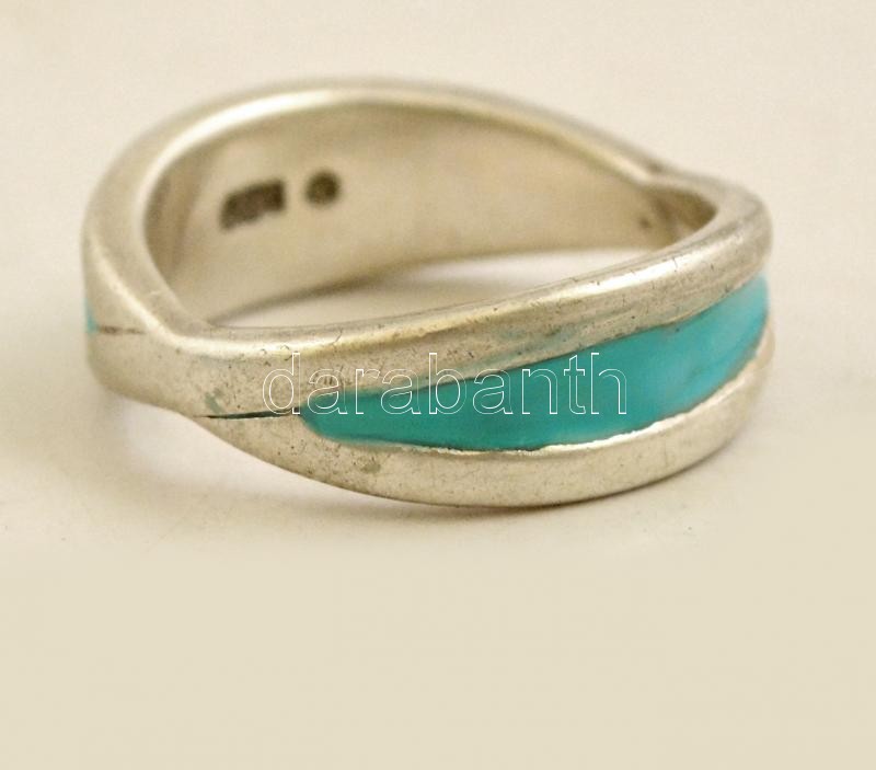Ezüst (Ag.) gyűrű, zománc festéssel, jelzett, méret: 57, bruttó 5,9 g