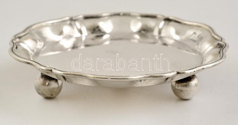 Ezüst(Ag) golyólábas kerek tálka, jelzett (mesterjeggyel), d: 15 cm, n...
