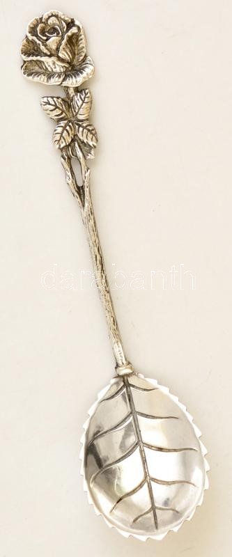 Ezüst(Ag) rózsás nyelű díszkanál, jelzett, h: 11,2 cm, nettó: 9,5 g