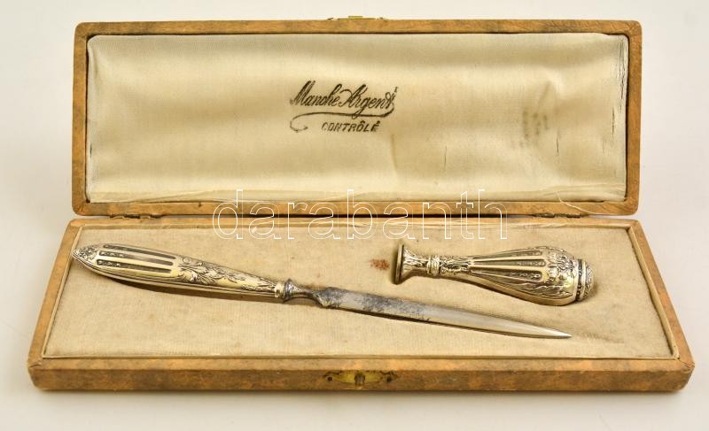 Manché Argent jelzett ezüst levélbontó és megszemélyesítetlen pecsétnyomó készlet eredeti dobozában / Silver seal maker and letter opener kit.